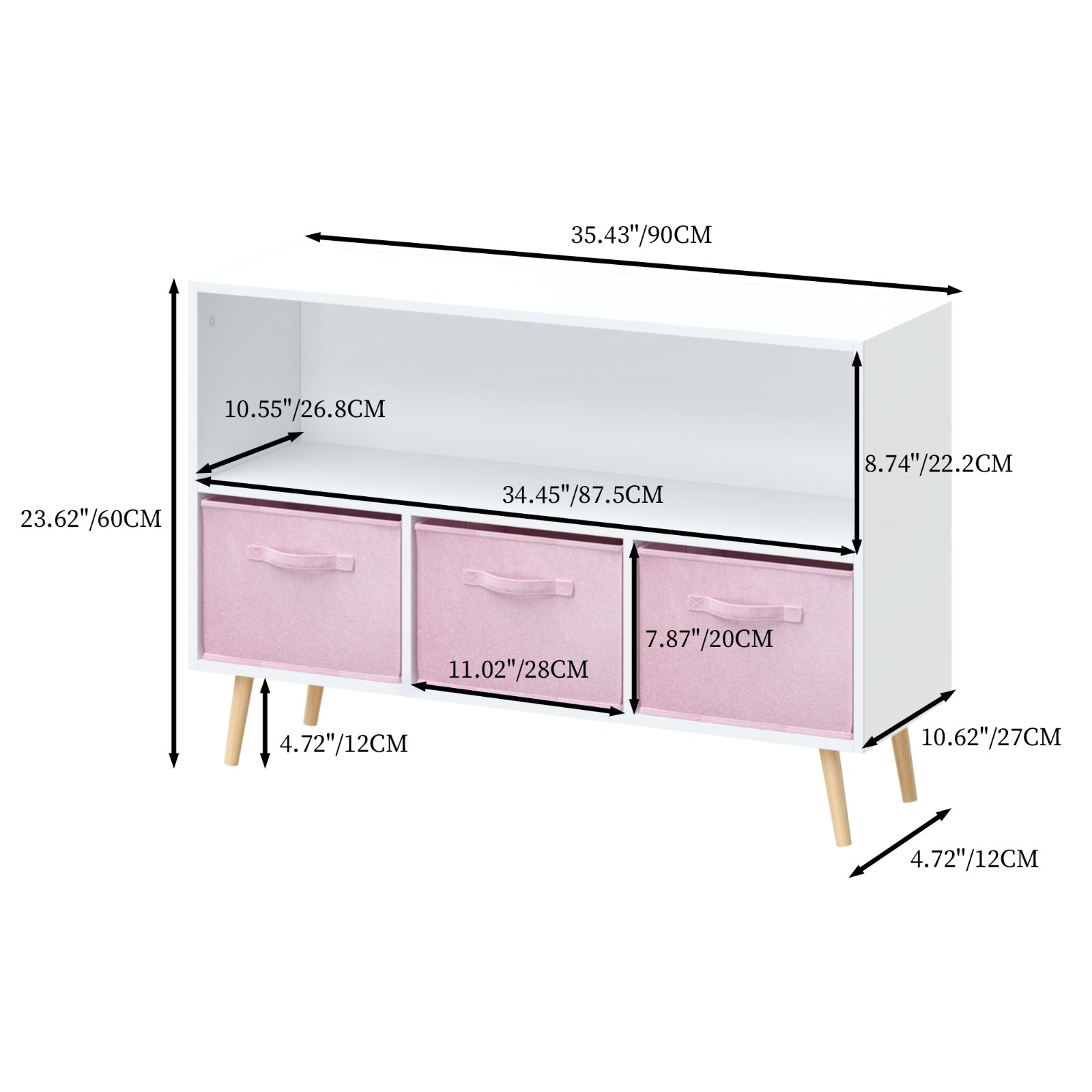 Kids bookcase with Collapsible Fabric Drawers, Children's Book Display, Toy Storage Cabinet Organizer, White/Pink